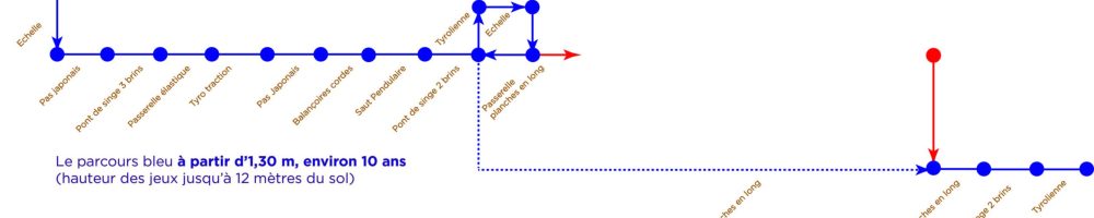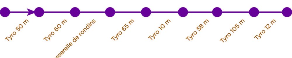 Vous accédez à ce parcours pour une durée d'une heure minimum, ce qui laissera le temps à vos aventuriers en herbe de se familiariser avec les divers ateliers d'équilibres et de pouvoir refaire le tour complet de trois à cinq fois.